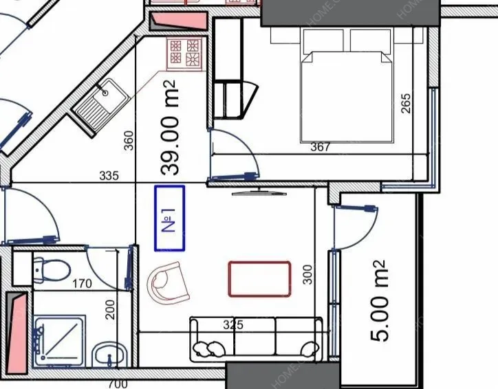 Квартира 39 м2 на ул Григола Лорткипанидзе (Лот 4761ХО)