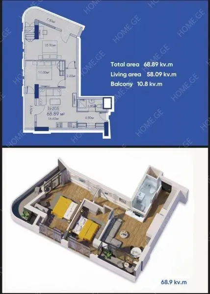 Квартира 65 м2 на ул Григола Лорткипанидзе (Лот 154)