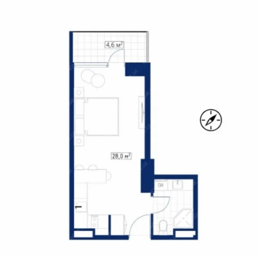 Квартира 33 м2 на ул проспект Жиули Шартава (Лот 59)
