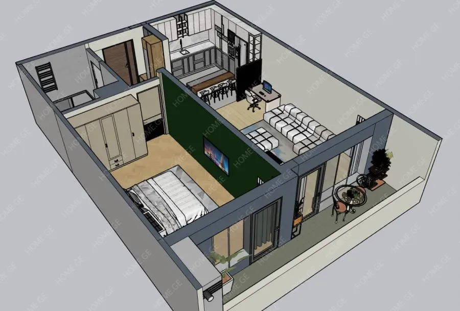 Продаётся квартира 1+1 в зелёном каркасе, с 1 спальней.