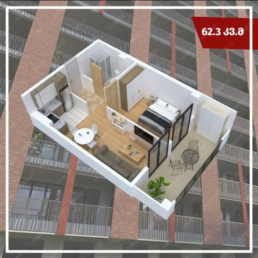 ???? ფართი: 62.2 მ²