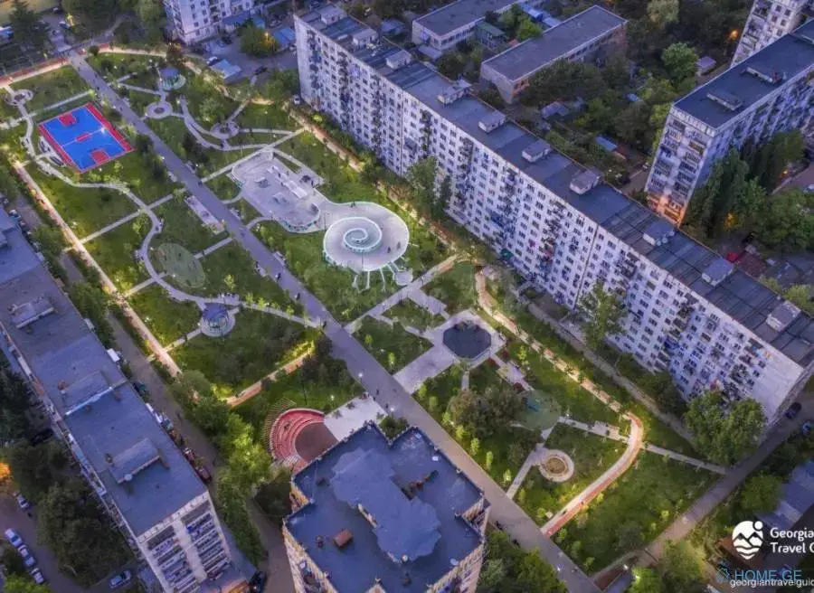 მდებარეობს პარკის თავში , საბავშვო ბაღის წინ