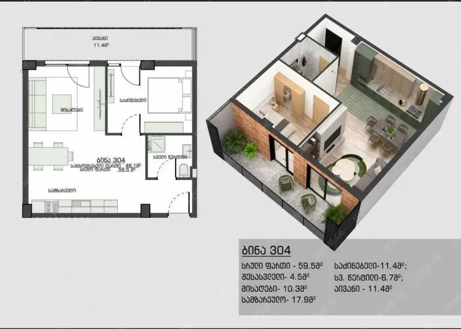 იყიდება 2 ოთახიანი ბინა დიდ დიღომში