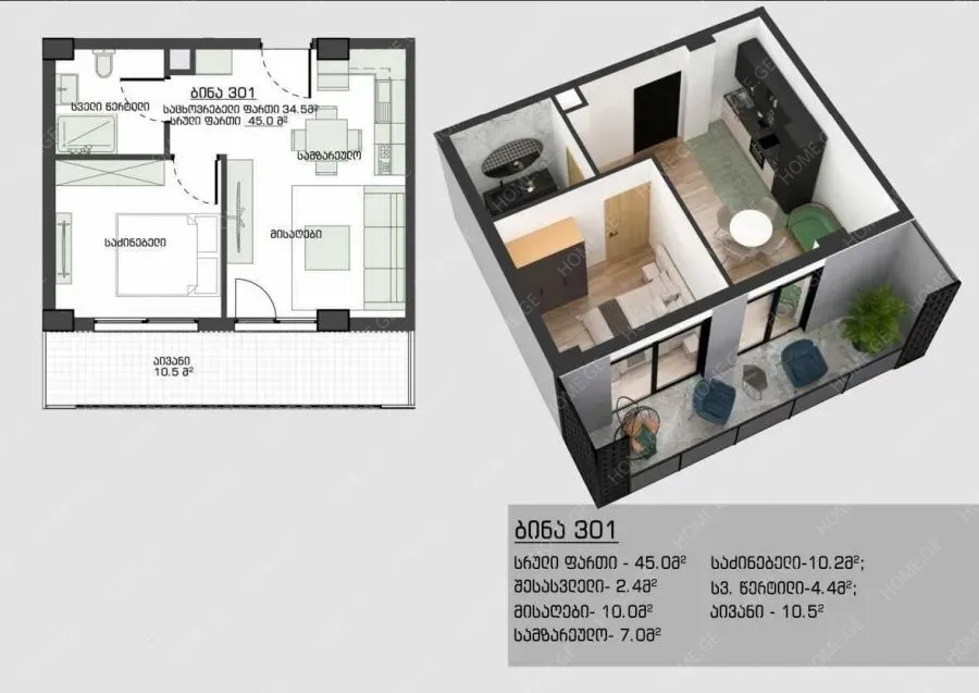 Продается квартира, 2 Kомнатная, В процессе строительства, Тбилиси, Диди Дигоми