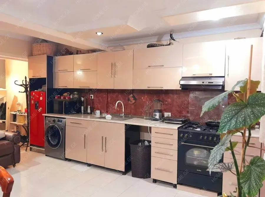 From the owner - For sale 143 sq.m. 3-room clean apartment, (living area 90 sq.m. + balcony 7 sq.m. + 40 sq.m. space under the studio, which allows for conversion into a duplex or can be used as a basement + 6 sq.m. basement). 2 bedrooms, 1 dressing room. 1 bathroom. 1 living room with a studio-kitchen. There is a spruce forest on the side of the bedrooms, and lime trees and walnut trees on the front side. The apartment is isolated from the entrance and the entrance is from the yard.. With central heating. The apartment will remain with a built-in kitchen, appliances and part of the furniture by agreement. The location of the building is located on the right side, which is included in the red lines and will not be subject to demolition. Tel: 597 97 99 90