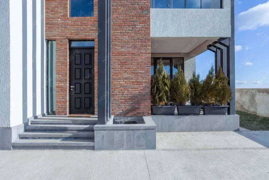 სახლი არის ბრტყელი გადახურვით და შესაბამისად აქვს ღია ტერასა არაჩვეულებრივი ხედებით. ტერასაზევე არის გადახურული მოსასვენებელი ოთახი. სახლის ეზოში არის 40 კვ.მ. იზოლირებული მარანი.
